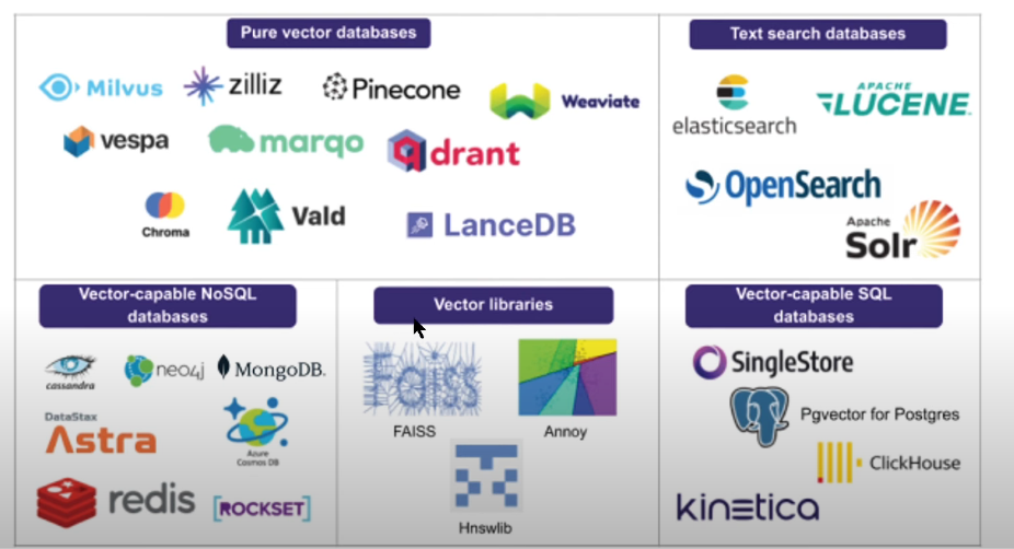 - 벡터 저장소는 임베딩된 데이터를 인덱싱하여, input으로 받아들이는 query와의 유사도 출력